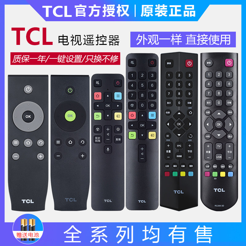 TCL TV Universal Original RC07DC12 Original RC07DC11 Original RC801L Original RC801D Original RC260JC14 Original RC260JC11 Original RC2000C11 Original RC2000C02 Original RC2000-3D Original RC71 with Somatosensory Function Original RC71S Original RC801SX Original TCL Assistant Original TCL TV (Synchronous Cinema) Original RC601JC11 Original RC520 Charging Remote Control Original voice RC601S