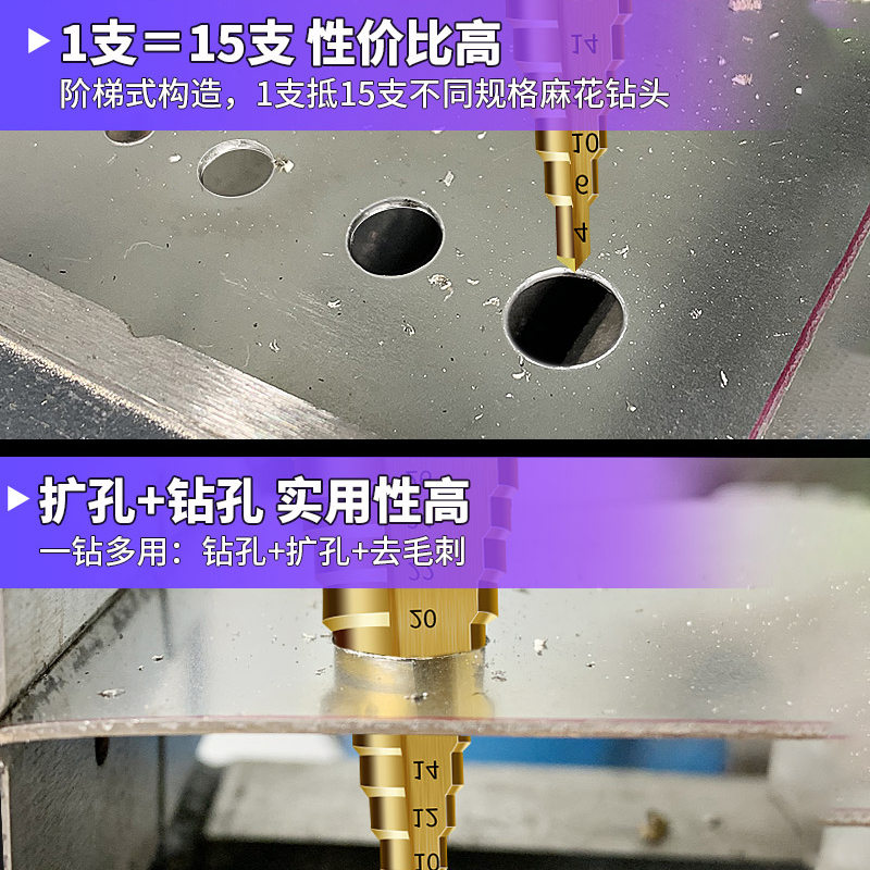 Pagoda drill universal punching tapered stepped drill steel ultra-hard reaming drill stainless steel metal special drilling machine