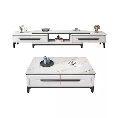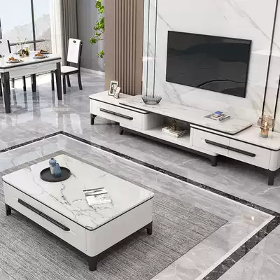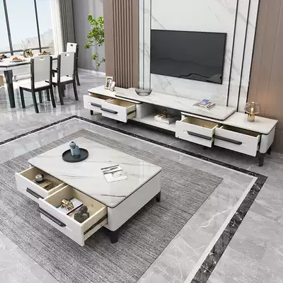 Solid wood coffee table TV cabinet combination set Marble countertop modern simple retractable living room storage cabinet Nordic