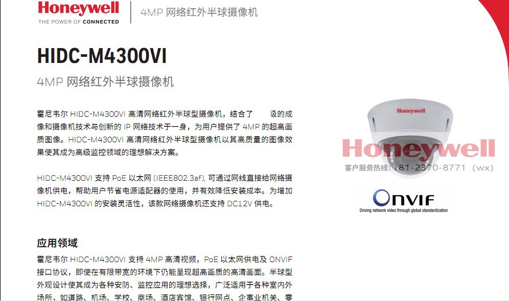 HoneywelllHoneywell 4MP infrared Internet Hemisphere cameras 4 million pixels HIDC-M4300VI