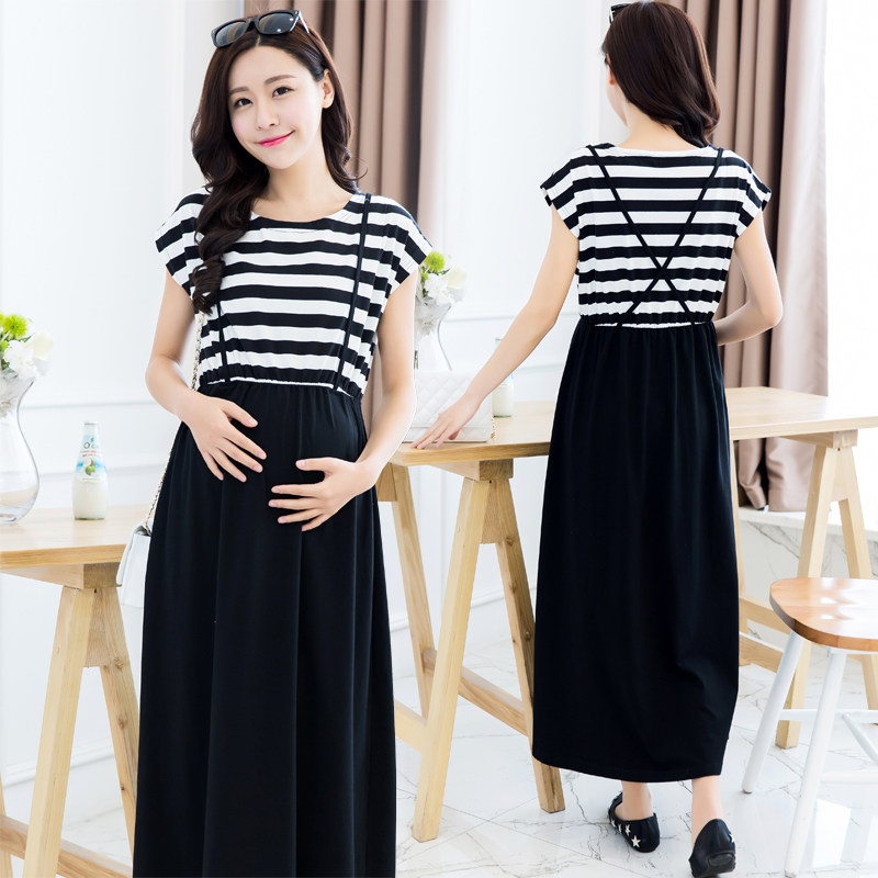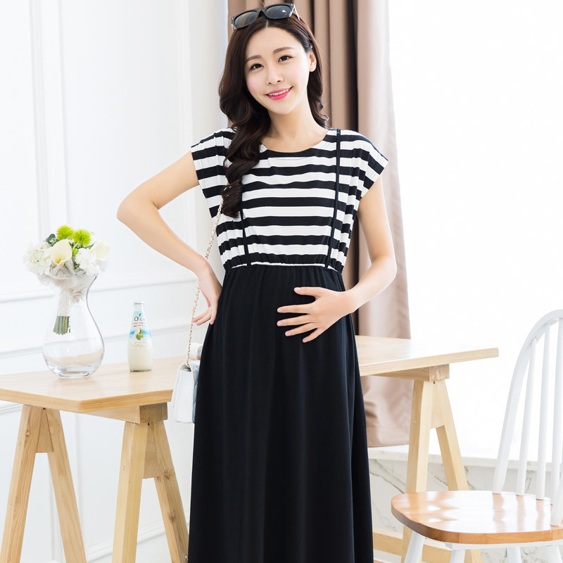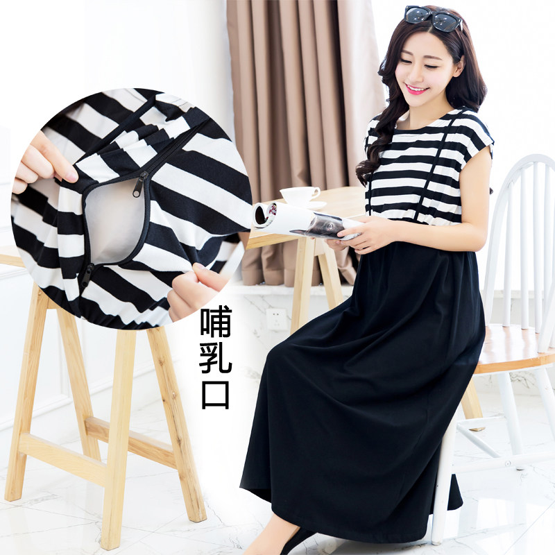 2020 Summer new gestation Women in Han version Slim Ocean Dress Out Striped Breastfeeding Nepotism Medium Long version of the dress