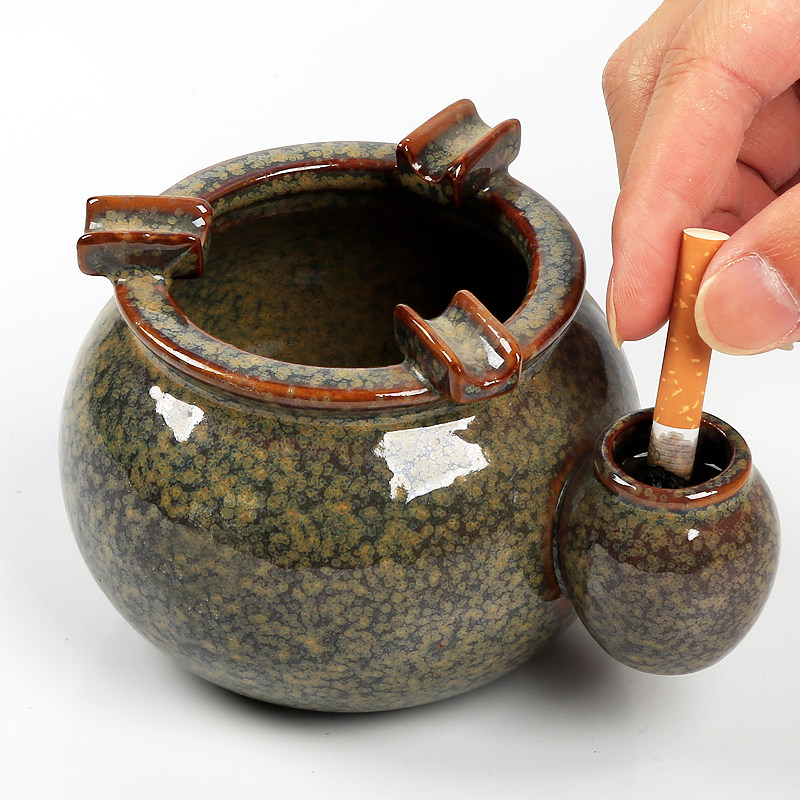Round ashtray ceramic creative personality anti-fly ash square large living room office ashtray antique and old