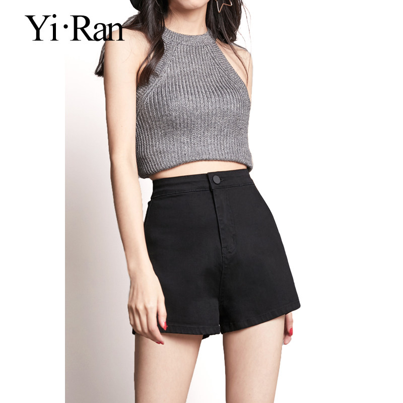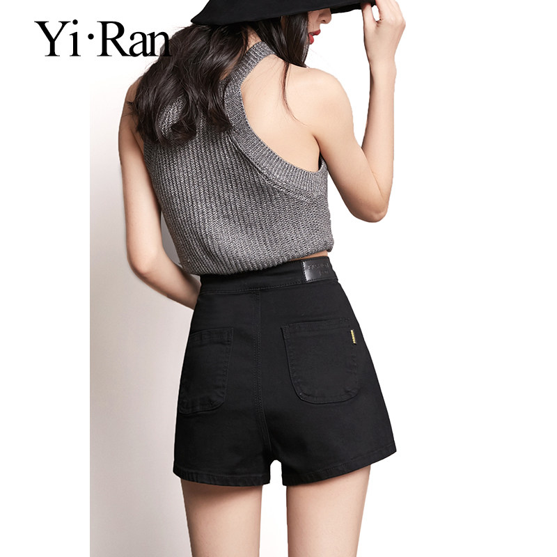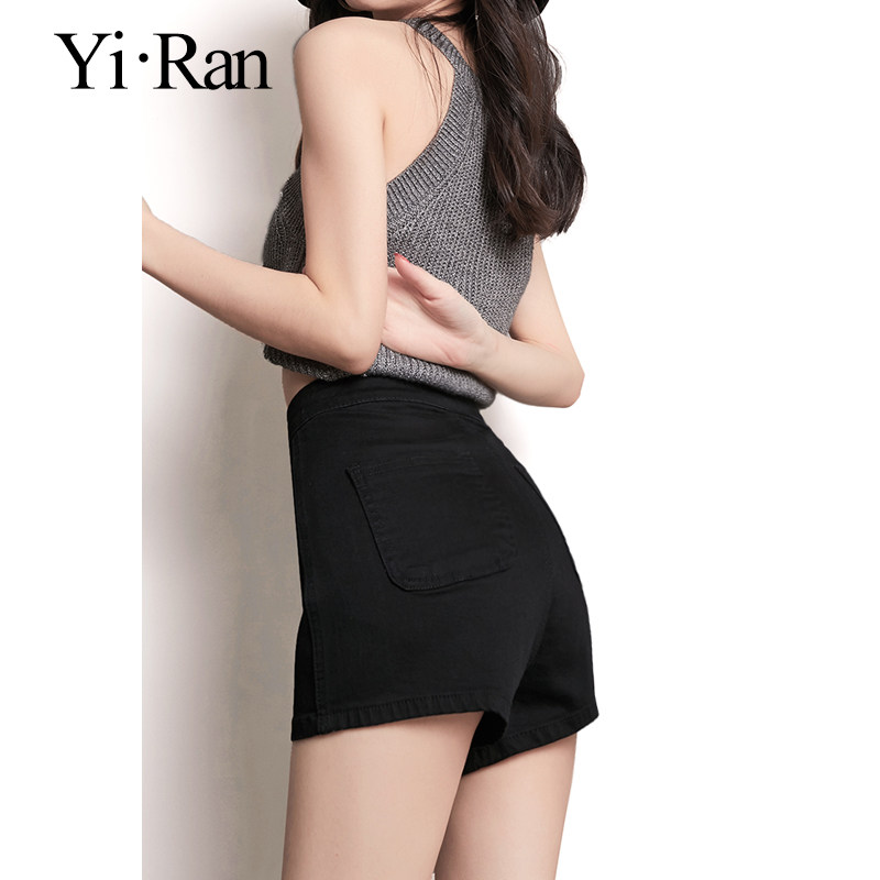 Black Jean Shorts Woman Summer Thin High Waist A-word Loose Skin Stretch Stretch Wear Trousers