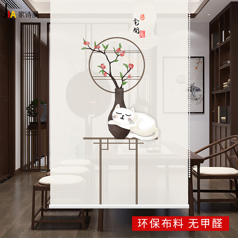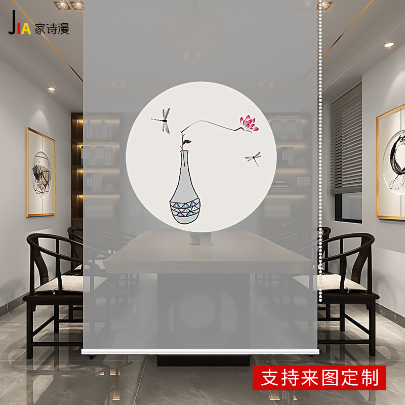 New Chinese custom roller shutter free of punching Living room curtains shading curtain lifting book room shading and waterproof hanging picture screen curtain-Taobao