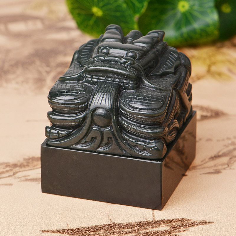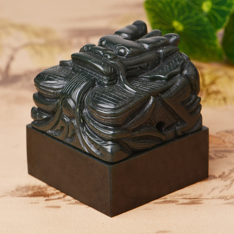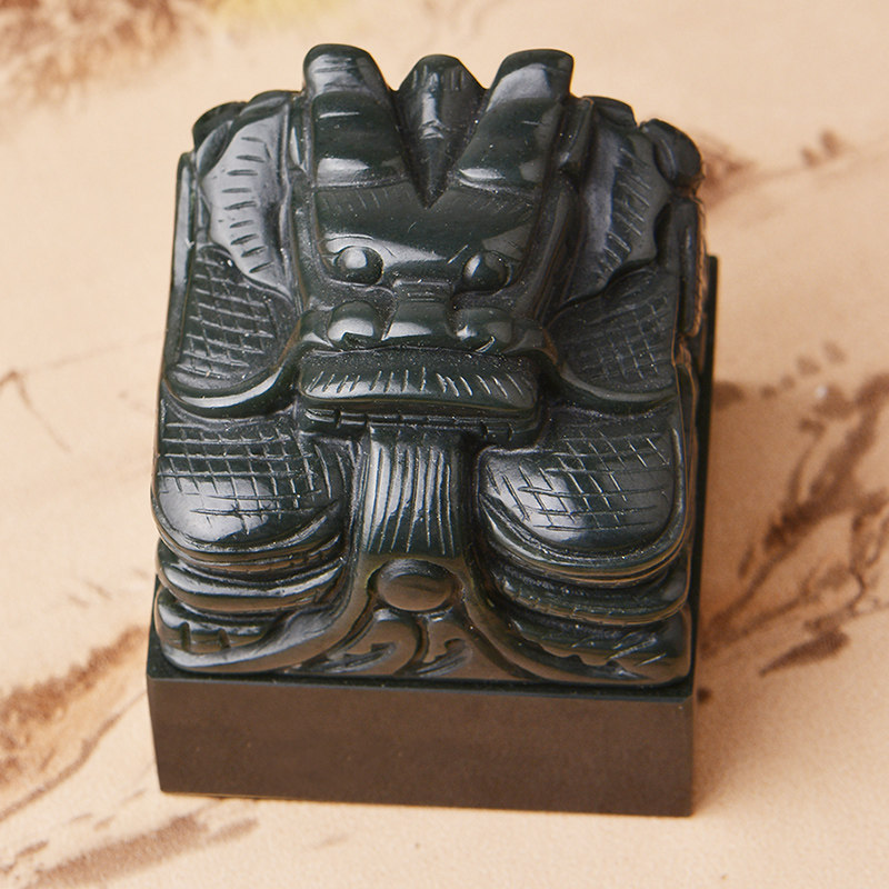 Natural And Tian Jade Green Jade Pan Dragon Seal Dry Lung Seal Name Engraving Chapter Business Gift Jade Seal Lettering