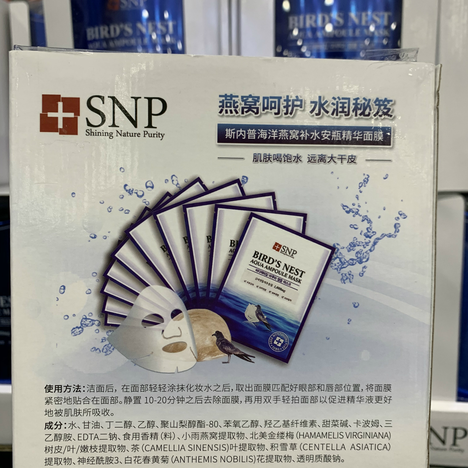 Shanghai costco Korea SNP Snape marine bird's nest moisturizing ampoule essence mask moisturizing 10 pieces