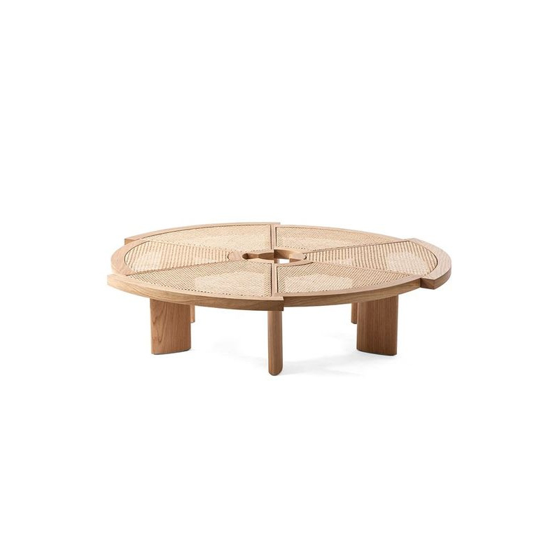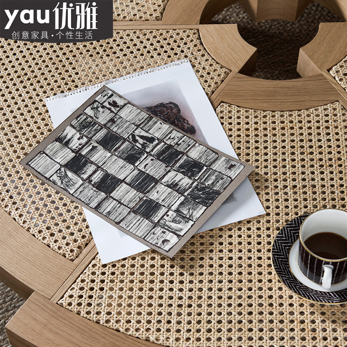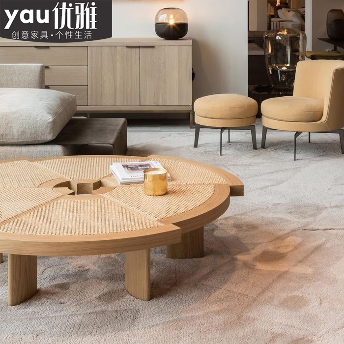 Nordic minimalist rattan coffee table round living room home solid wood parquet log homestay wooden storage rattan tea table