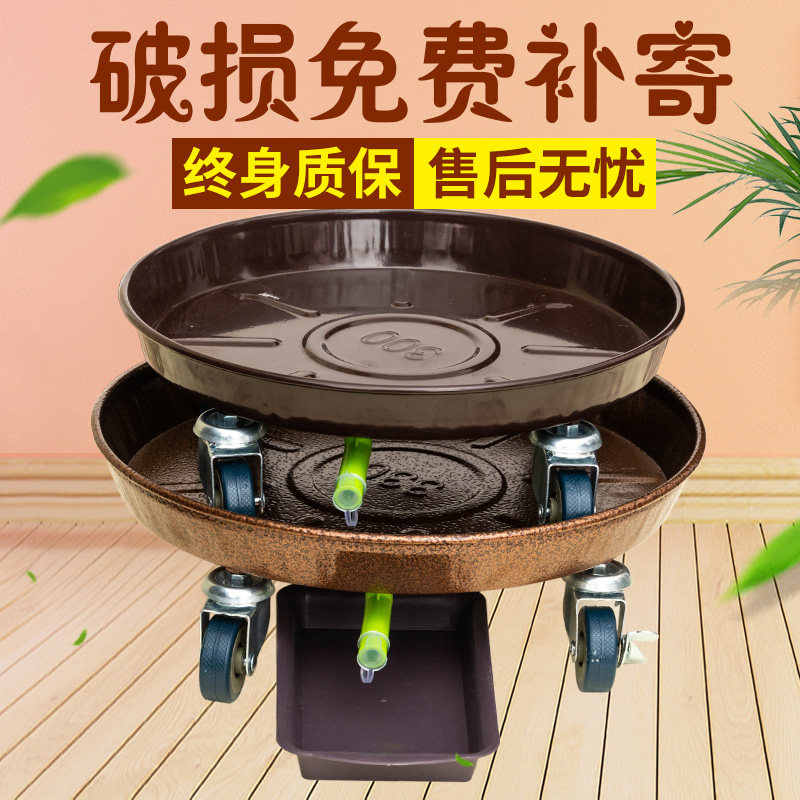 Thickened metal flower pot nursery base with universal brake roller round with water-drain movable flower tray towed