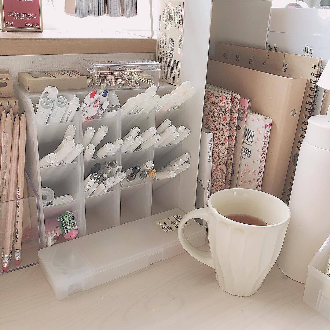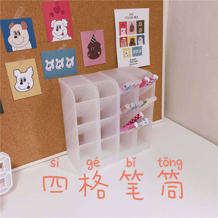 Korean ins desktop storage box simple oblique plug-in four-grid student plastic pen holder Nordic creative transparent frosted
