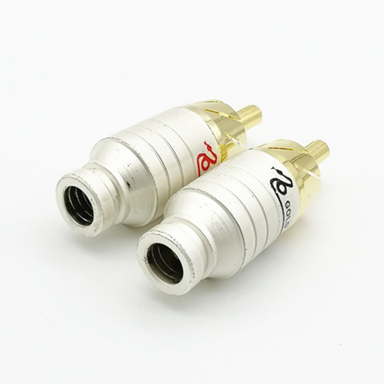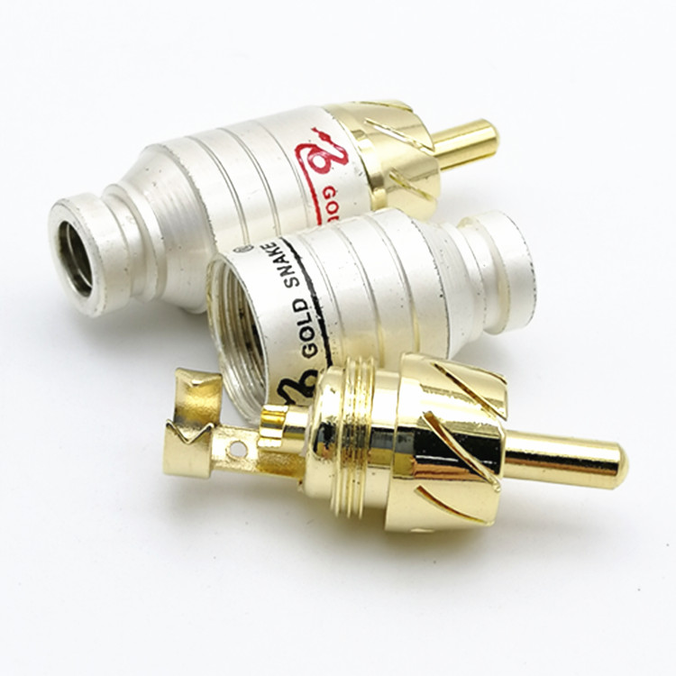 White Snake King Gold Snake Copper Gilded Audio video Lotus Head RCA Connector AV Plug Small Tail Hole