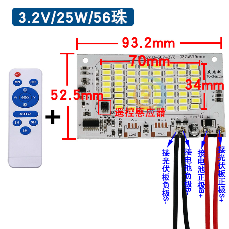 Cornucopia solar panel lamp board integrated floodlight with electric display 3 2v lamp bead light source lamp board remote control controller