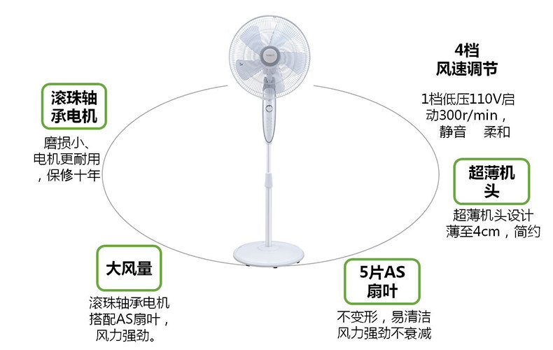 Gree Dasong lift landing wide-angle shaking head 2H timing 5-leaf flat-back roller motor electric fan FD-4037g5