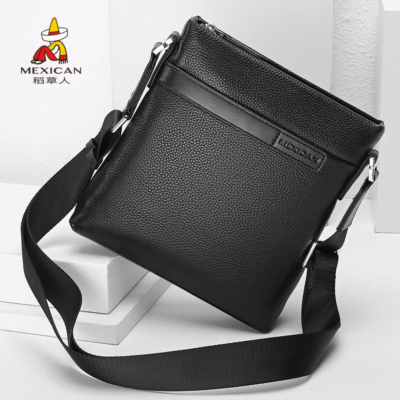 Rice straw man casual minimalist business men's bag in old age Dad bag genuine leather Grandfather bag Bull Leather Diagonal Satchel