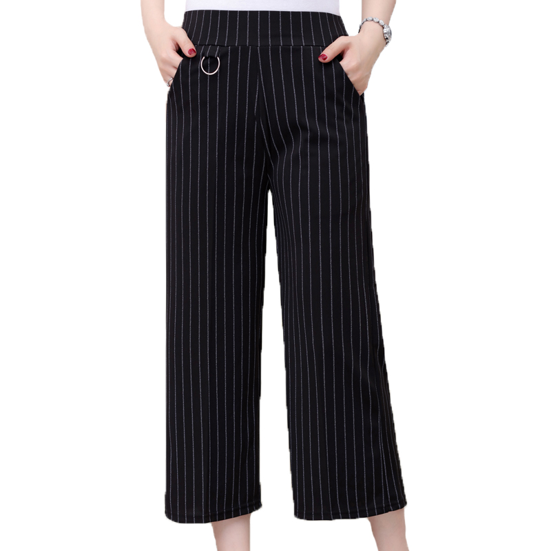 Middle-aged mother nine broad legs high loose summer thin middle-aged and spring and autumn wearing pants loose mother-in-law