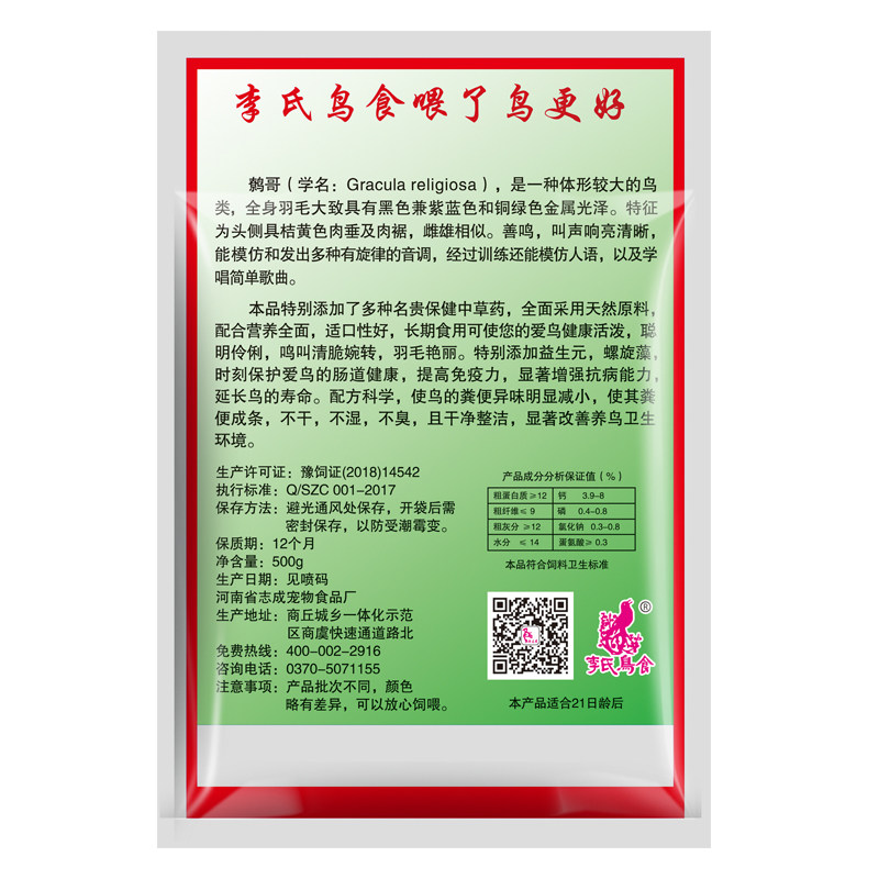 1 piece = 5 bags of Li's 626 mynah bird food mynah bird food mynah thrush lark feed bird food