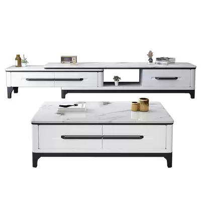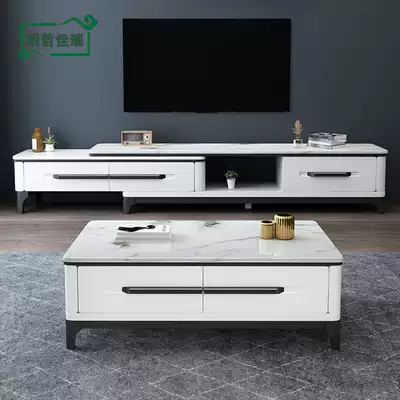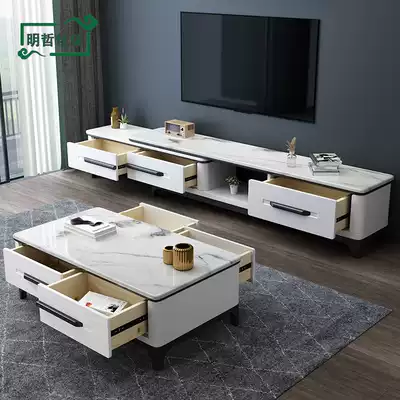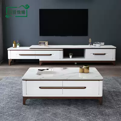 Marble TV cabinet coffee table combination set small apartment living room telescopic TV cabinet modern simple solid wood floor cabinet