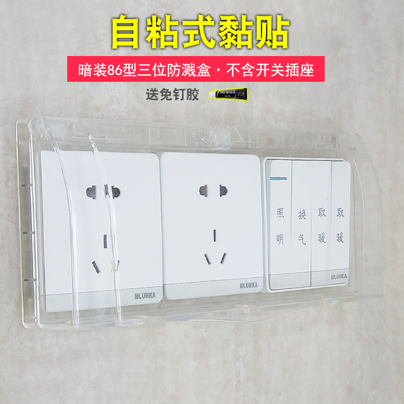 Bathroom White Bed Bag Cover 86 Type Switch Socket Self-Adhesive Type Three Waterproof Case Transparent Adhesive Waterproof Hood