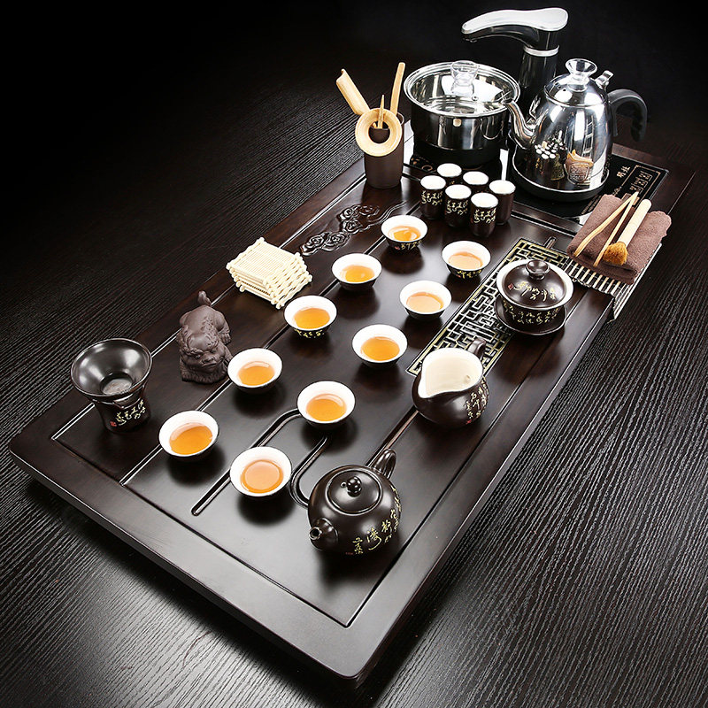 New tea set set Home office meeting tea tray Solid wood automatic one-piece large tea table drainage modern and simple