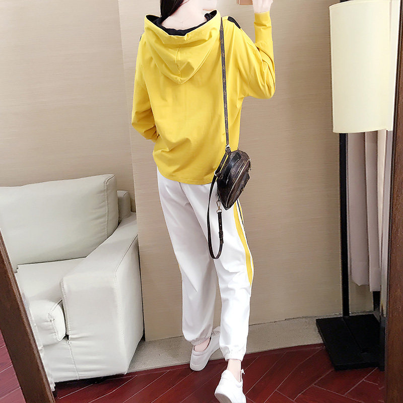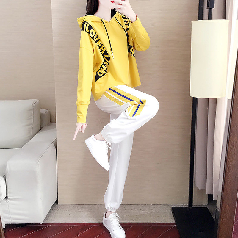 European station hooded sweatshirt casual sports suit women's spring and autumn 2021 spring and autumn new Korean fashion plus size trousers