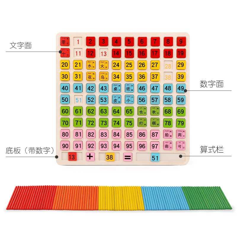 Children's cognitive digital building blocks 1 to 100 digital double-sided kindergarten Qman's early education educational teaching aids hundred grid board