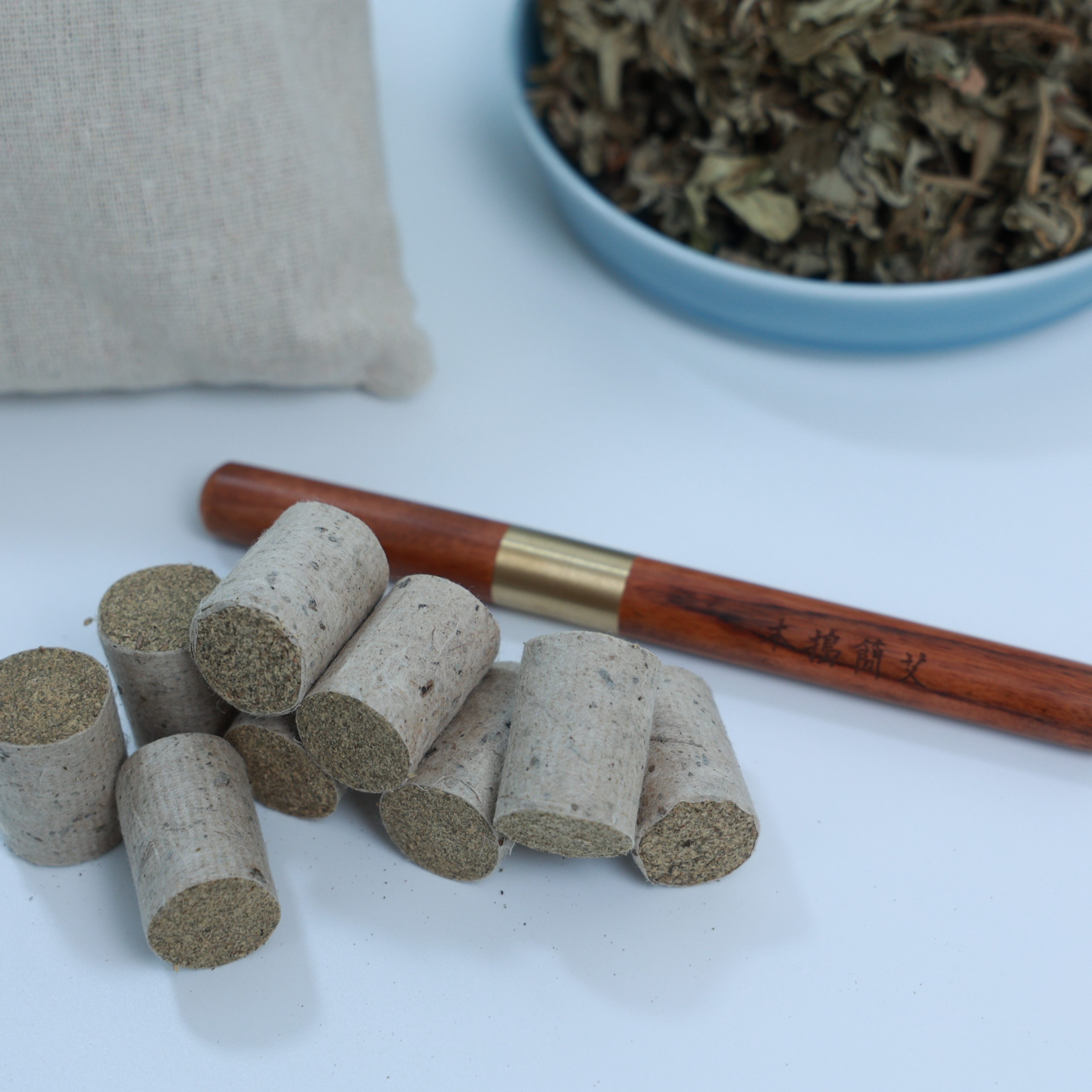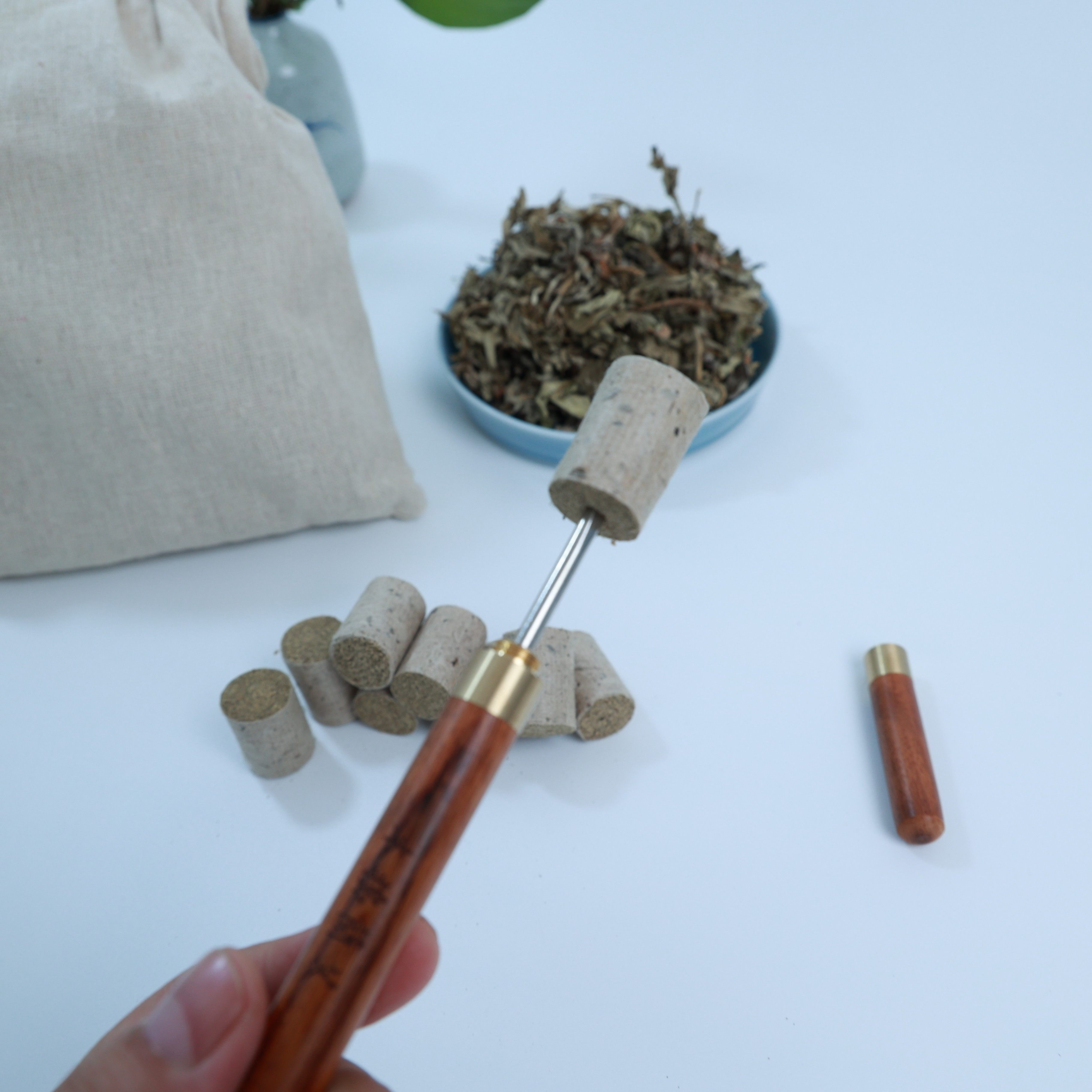Wood pounded moxa 20 diameter x 3 cm moxa pillar 52 grains Li Shizhen Qichun handmade moxa velvet ratio high-definition incense