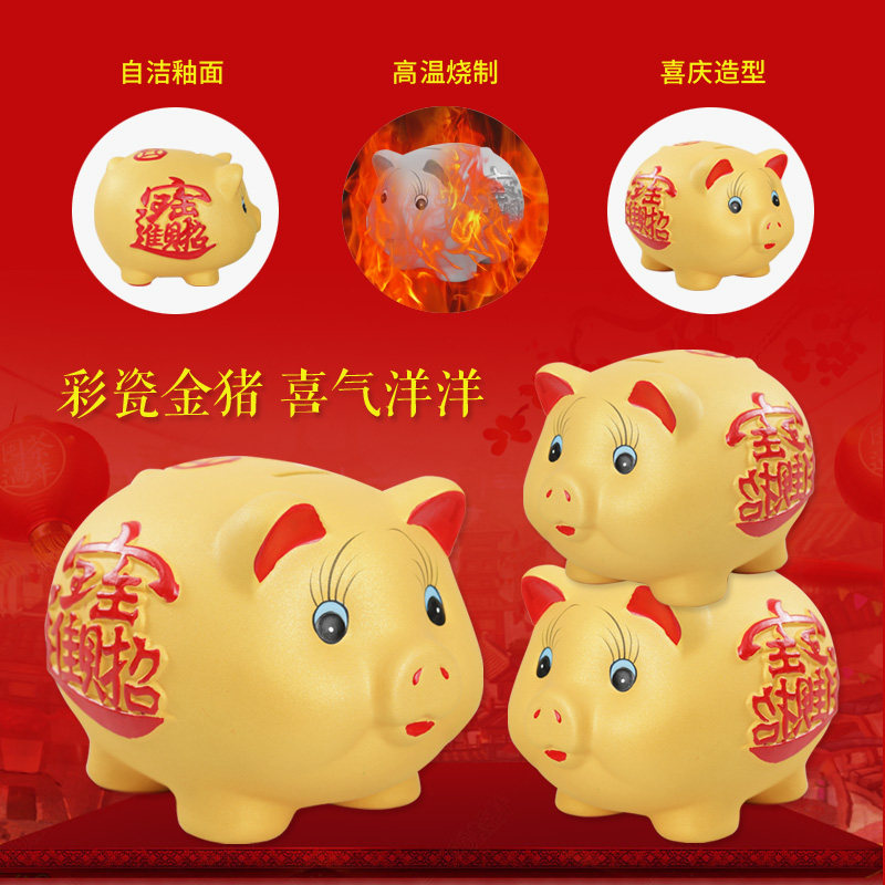 Ceramic piggy piggy bank gold piggy piggy bank adults use household savings large capacity children can deposit and take super large