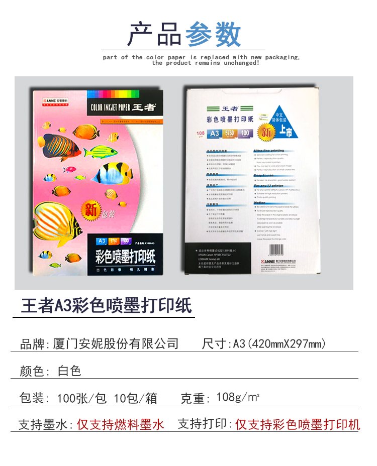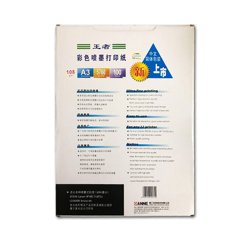 Color inkjet photocopying paper A3 king color spray can paper 108g photocopying paper 100 advertising photo studio promotional paper