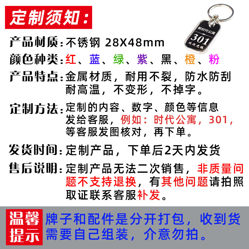 Metal Keycard Number number plate Deposit Cards Hotel guesthouse Key buckle Custom Stainless Steel Number Plates