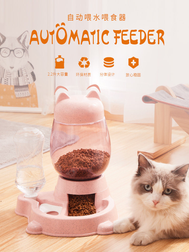 Cat food basin automatic feeding machine two-in-one body pet water dispenser kittens drinking water Cat Food Bowl pooch Cat Food