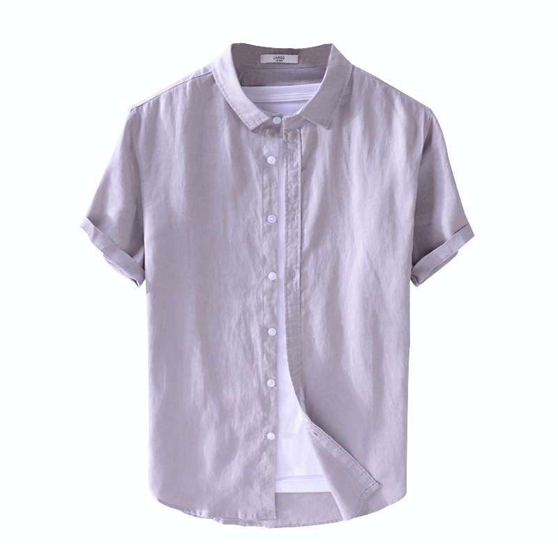 Sky blue Korean version of the trend handsome linen short-sleeved men's shirt youth breathable and comfortable linen top men's summer E