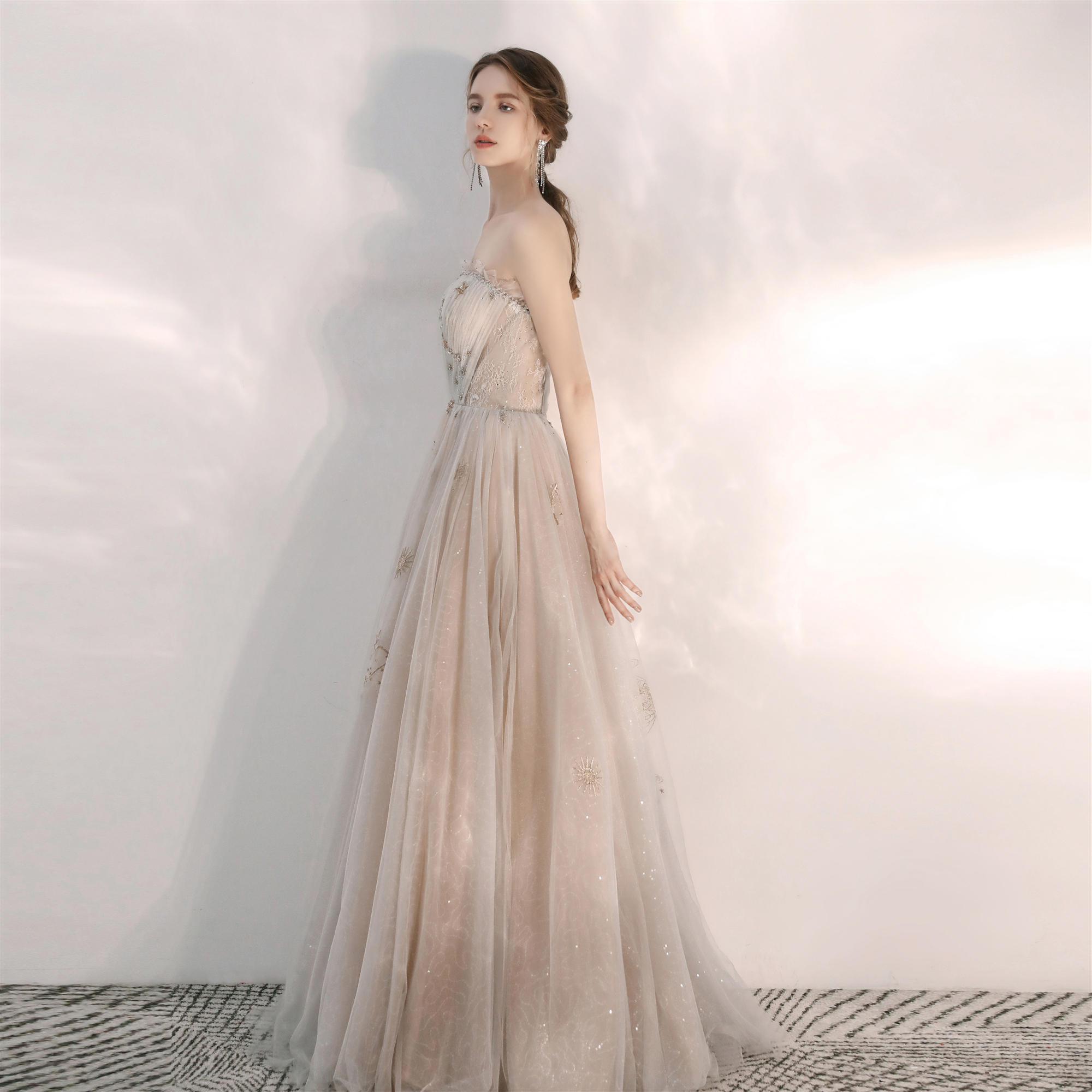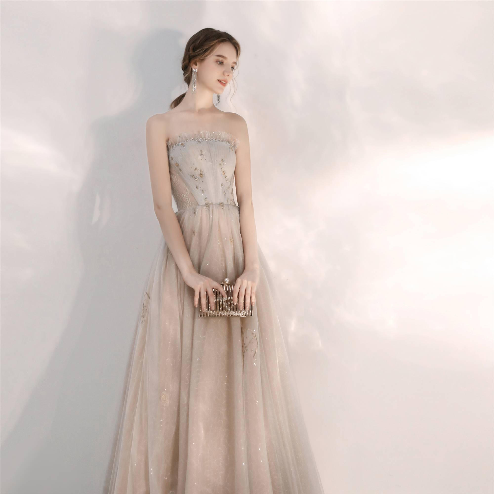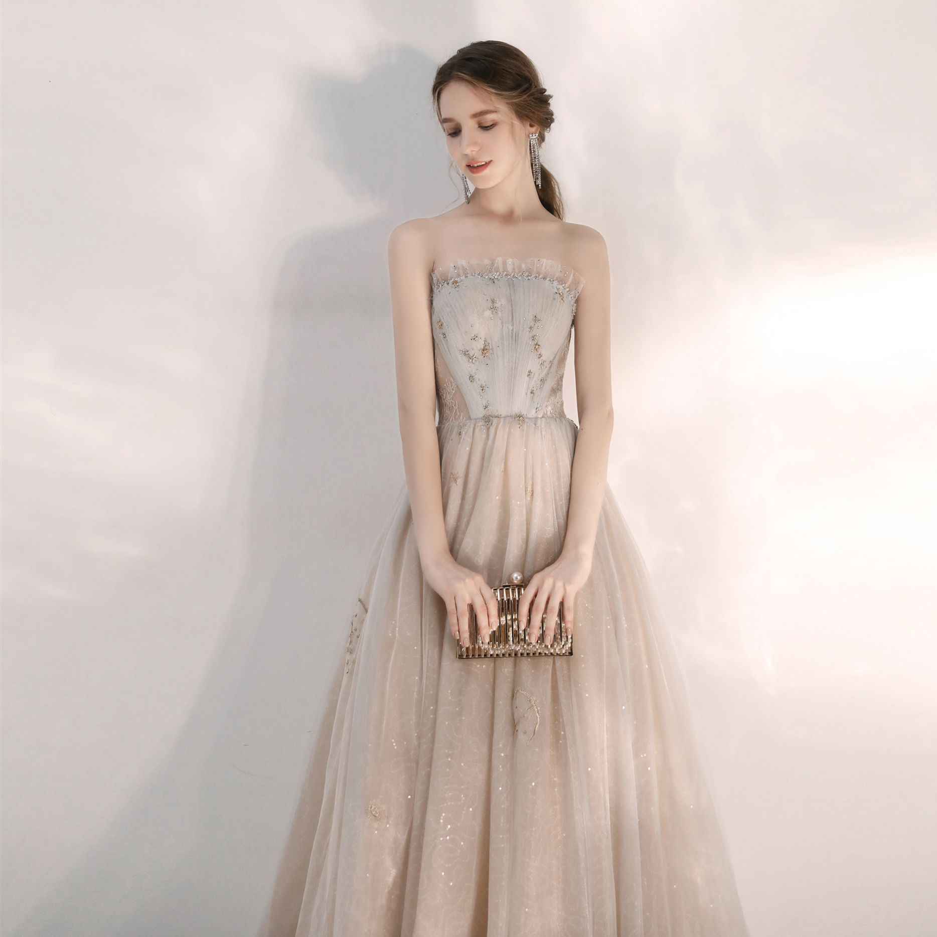 Evening dress female 2022 new summer banquet temperament bride knot engagement champagne white tube top small dress French style