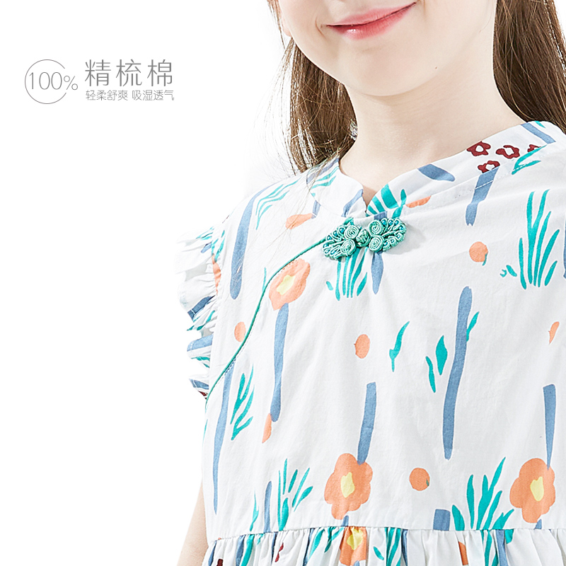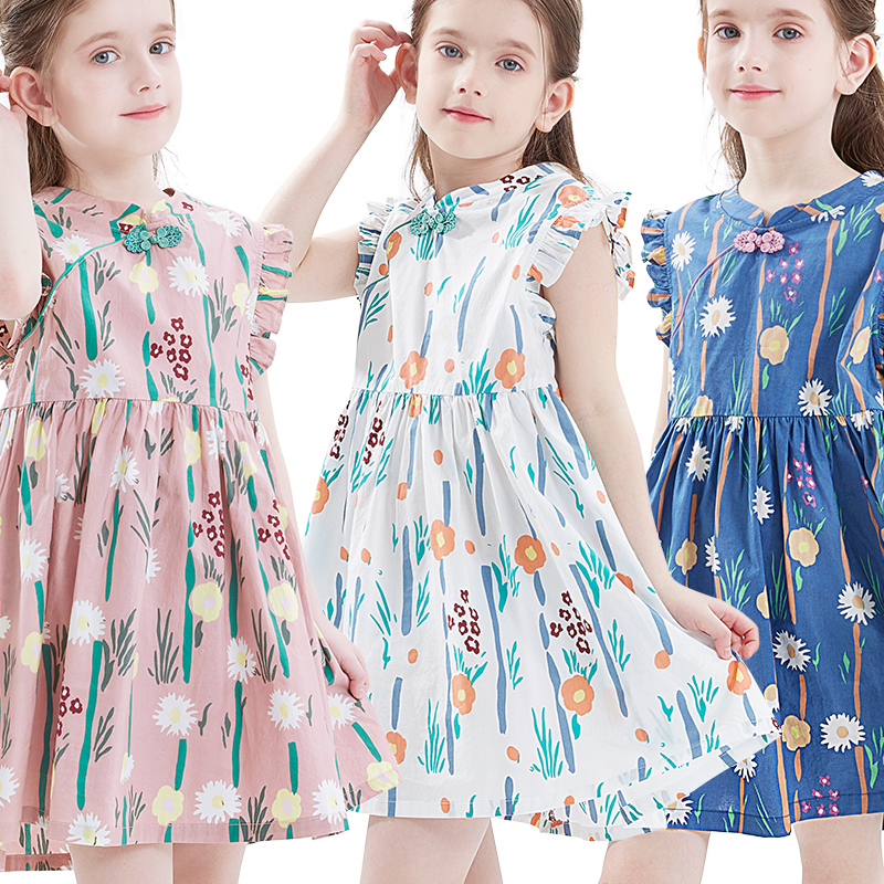 Girl Foreign Dress Children Pure Cotton Dresses Cotton Silk Crushed Flowers Qipao Hanfu Children Dress Princess Dresses Girl Great Boy Summer Clothes