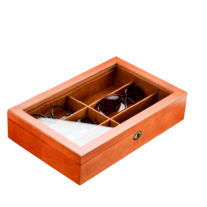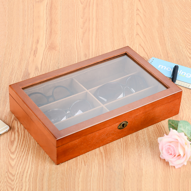 High-end minimalist glasses case sunglasses Doge storage box wood collection box open window transparent large capacity household