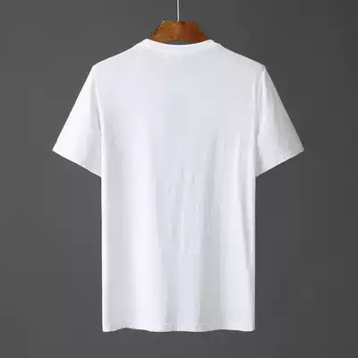 Cartoon character embroidery patchwork cotton and linen short-sleeved T-shirt men's simple casual white youth half-sleeved linen T-shirt E