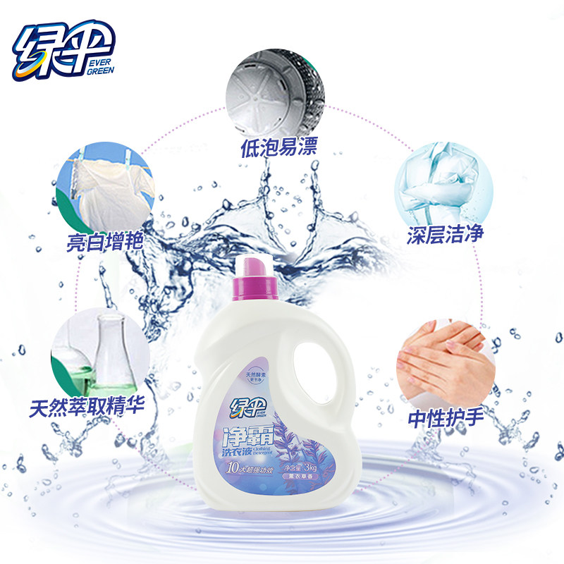 Green umbrella laundry liquid 3kg bottle color protection Deep cleansing care Lavender fragrance fragrance stain removal