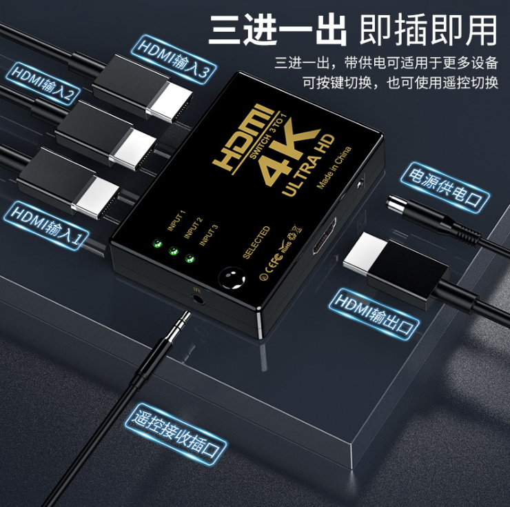 4K hdmi switcher 3 in 1 out HD video conversion hdmi 3 * 1 switcher 4K* 2K-Taobao