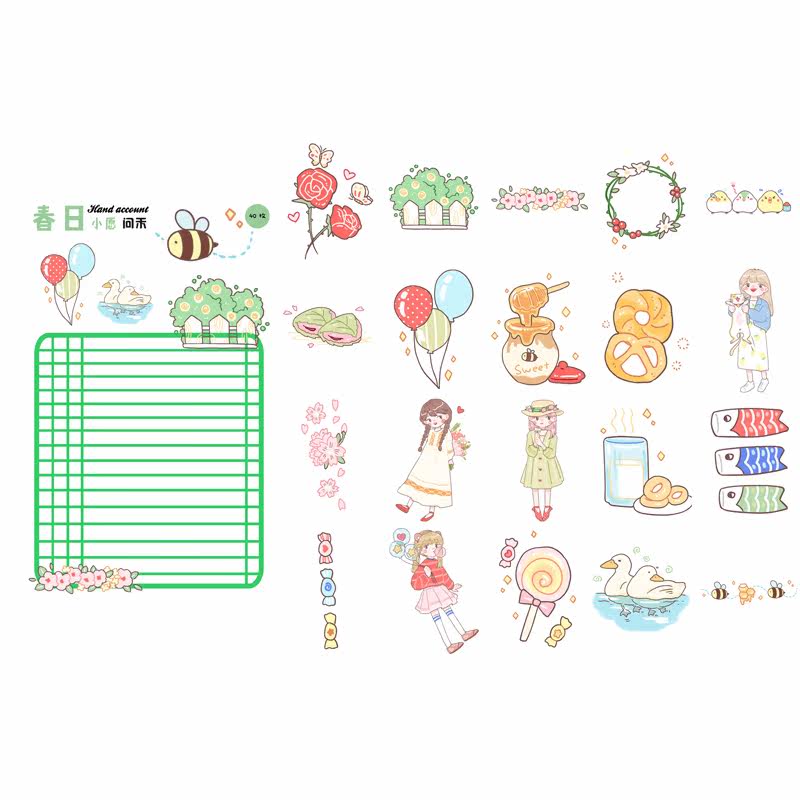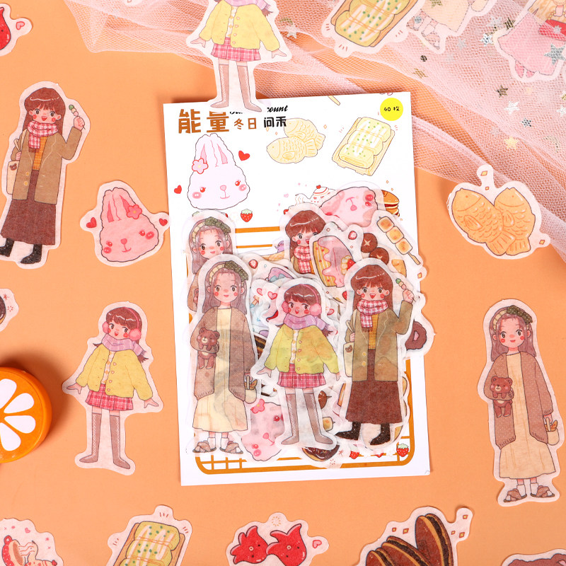 Handbook stickers cute girl Korean in transparent and paper waterproof stickers multiple patterns different handbook stickers bag cartography cartography fresh daily diary material small sticker