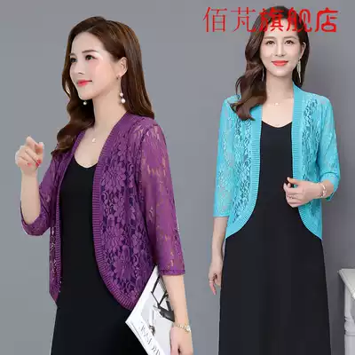 Clothing women's large size cardigan jacket new top lace shirt shawl mother's small outer tie air conditioning shirt