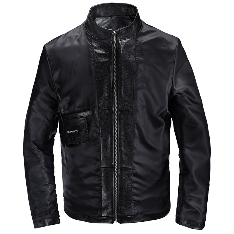 Clear Stock Pick Up Leak Head Layer Bull Leather Men Genuine Leather Leather Coat Briefs leather jacket Leather Jacket Stand-up Collar with short leather jacket