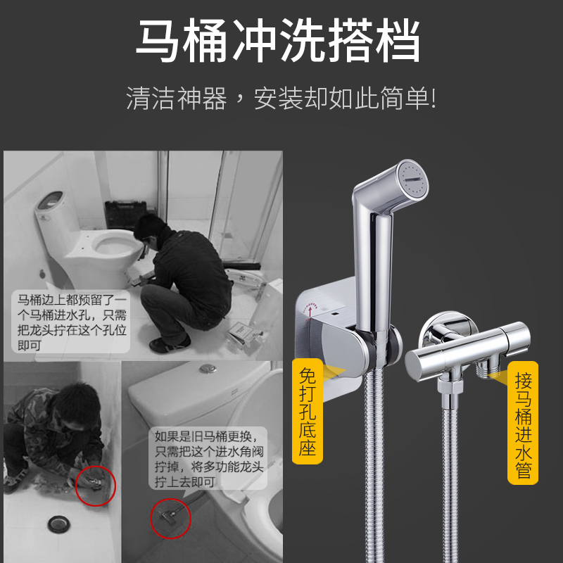 (one-in-one-out suit) Independent spray gun suit (upgraded version toilet) Double-out angle valve four sets-stainless steel tube (mop pool suit) spray gun tap Three sets (lift-up version toilet) Double out