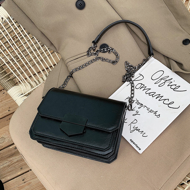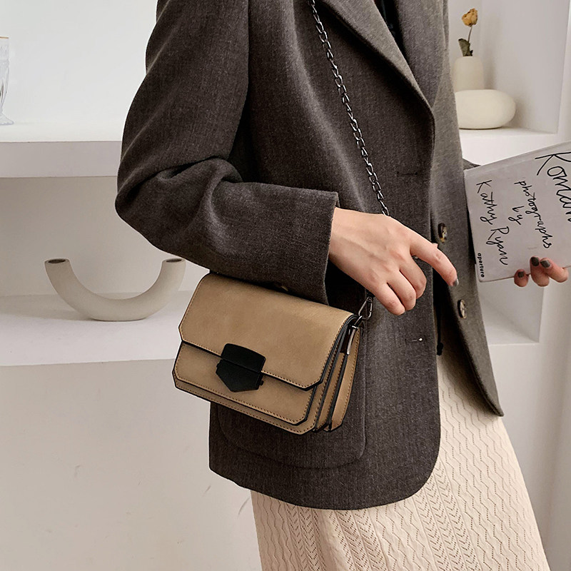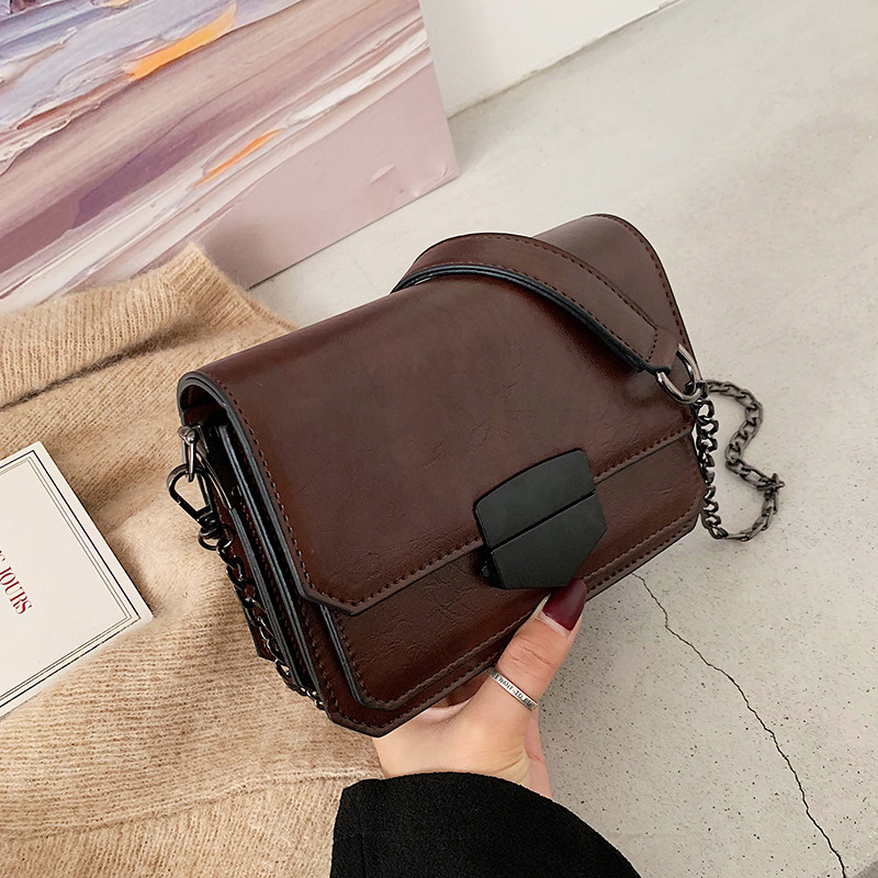 Texture bag female 2021 new lock small square bag girl genuine leather wild crossbody Western style chain shoulder bag