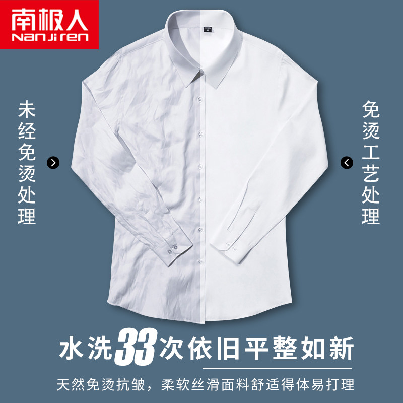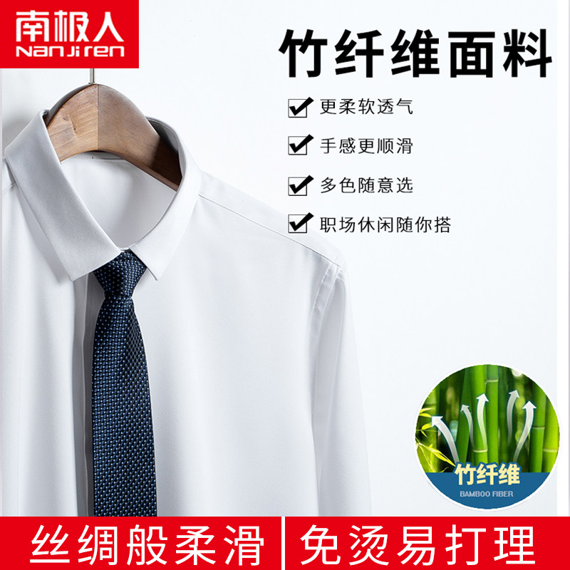 South Pole men's men's shirts Long sleeves bamboo fiber free of ironing Anti-crease-inch Business is fitting for autumn swarm with short sleeve white lining