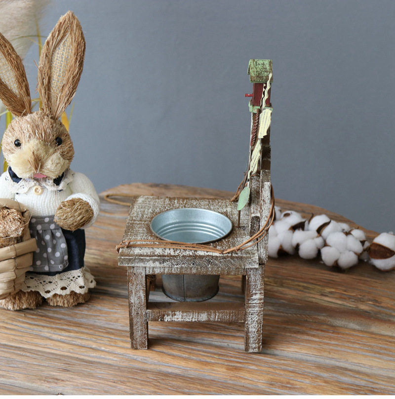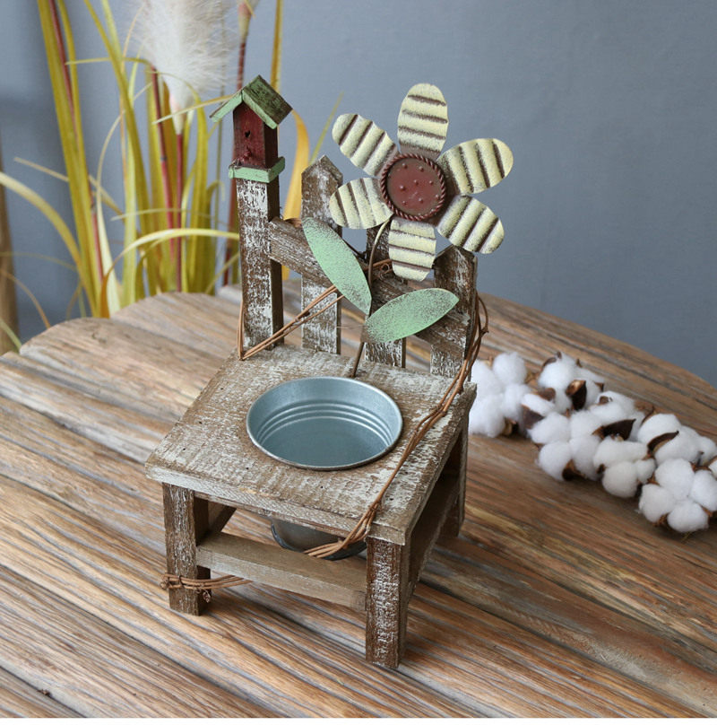 Field Garden Wind Multi-meat Planting Flower Pot Green Planting Flower Ware Solid Wood Retro Base Small Freshener Home Decoration Pendulum