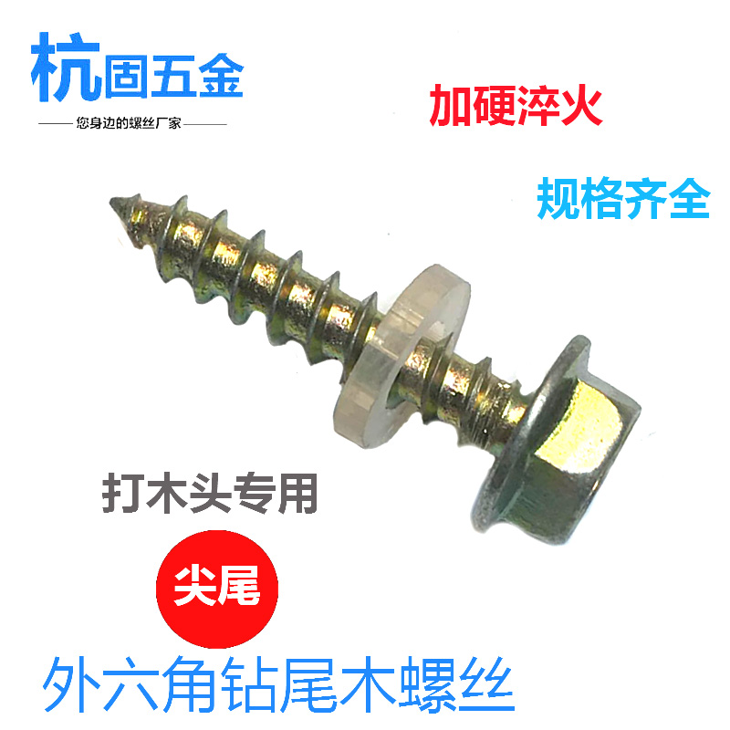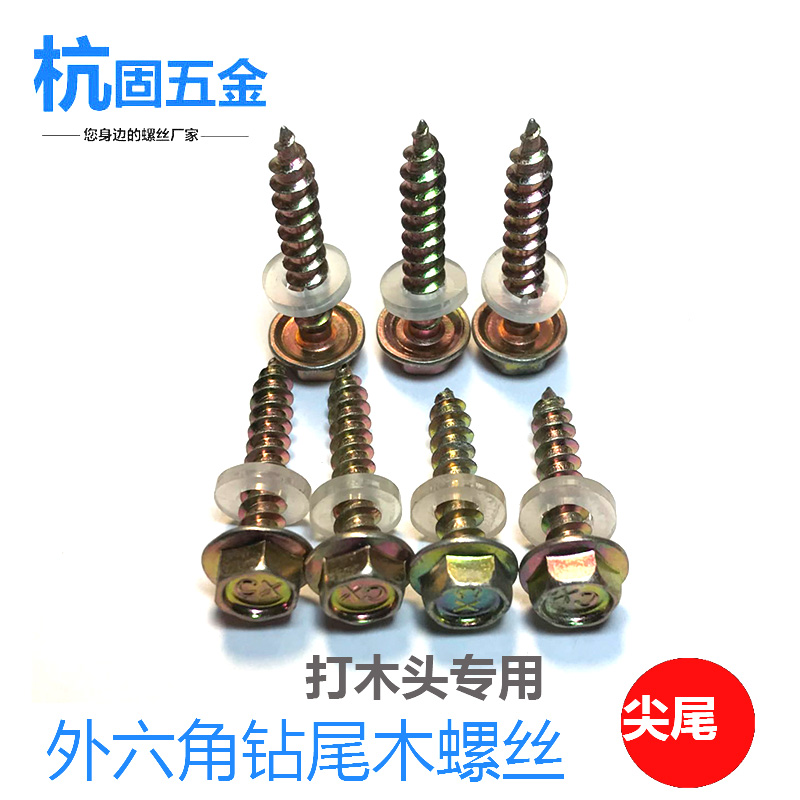 Outer hexagonal pointed tail wood screw self-tapping nail to hit wood lengthened pointed washer self-tapping self-drilling wood screw M5M6 3