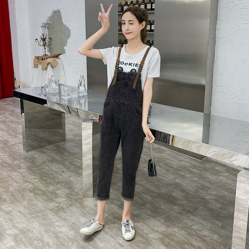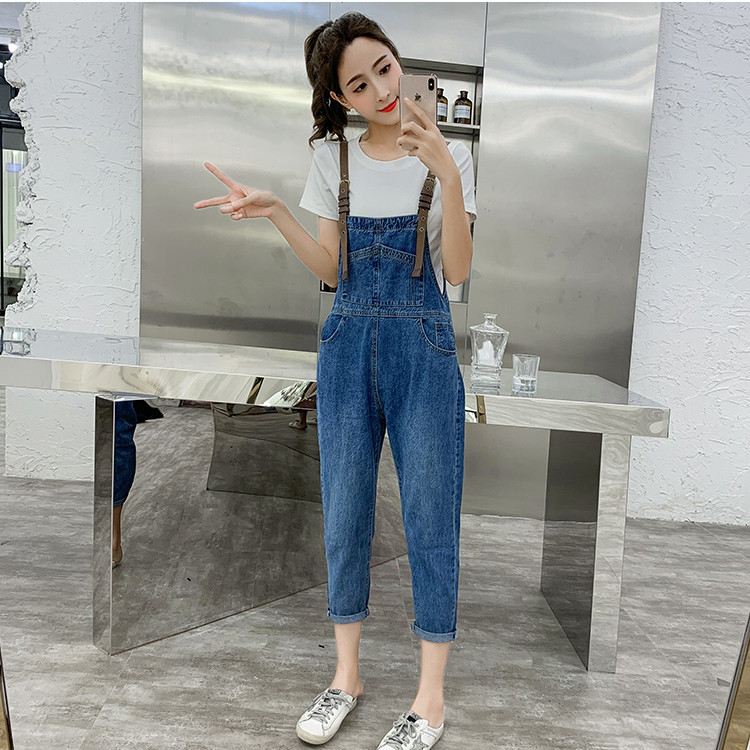 Small age-reducing baby bag pants female spring and summer petite 150cm short 155 high nine-point denim jumpsuit xs