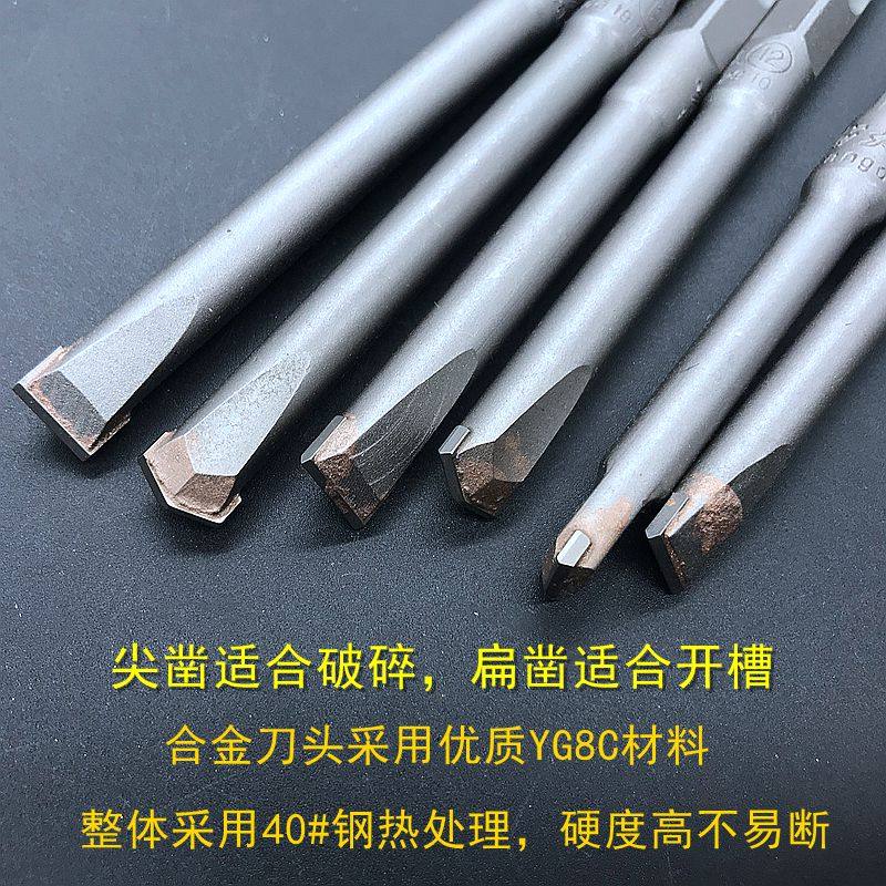 Fang Grand Wang electric hammer drill bit square handle 4 pit shock alloy chisel head spade wall Wang concrete slotted drill bit 10 12