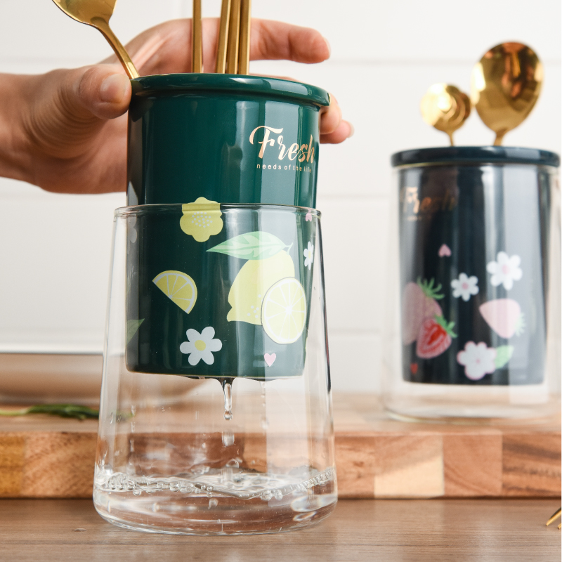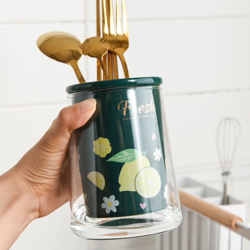 YAKA-HOME ins wind glass chopsticks tube knife chopsticks storage box kitchen fork storage shelf household tableware box