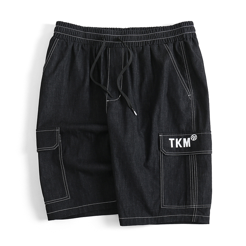 Black stiffness Large size 50% Pants Men Summer Gats Increased Tightness Waist Circumference Easy straight cylinder thin Jeans Tooling Shorts