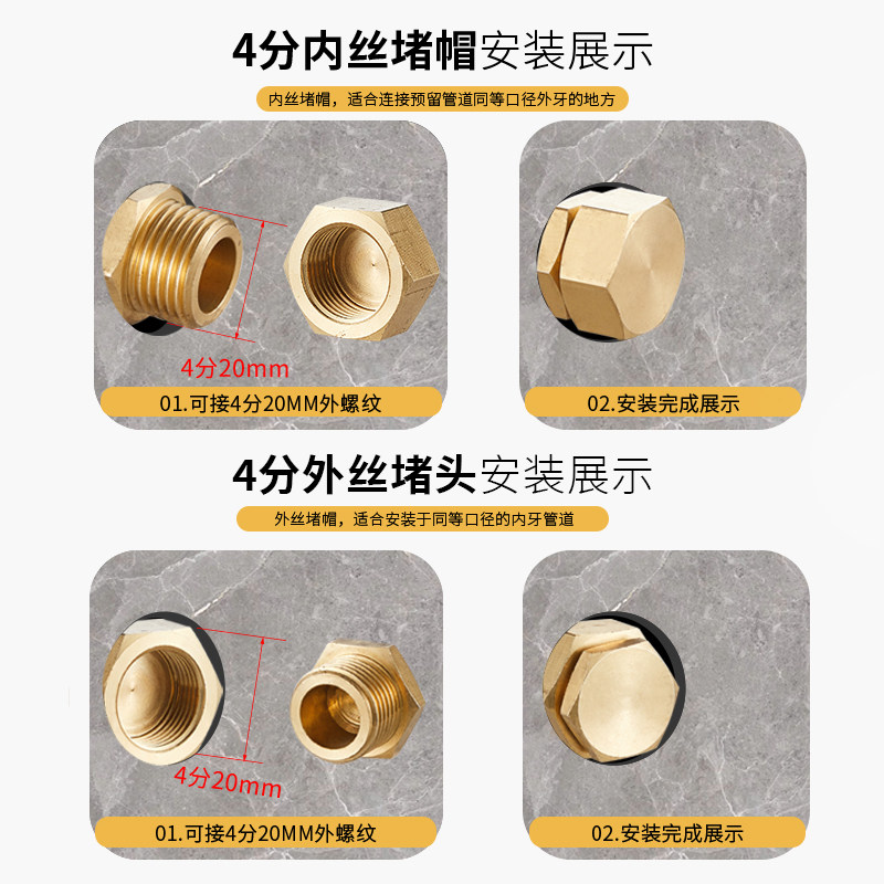 Total copper thickened 4 points 6 points 1 inch internal wire external wire choke plug cap 40% water pipe stuffy head tube choke plug cap copper choke plug