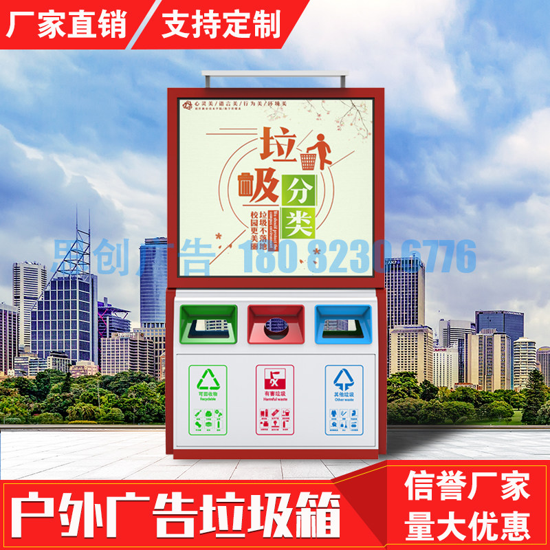 Advertising trash can outdoor sanitation three throw garbage bin community street peel box factory direct sales can be customized